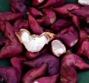 做法:红菱去壳,捣烂,绞取自然汁,放置一夜,再入白糖少许,隔水炖略温,即可饮用。