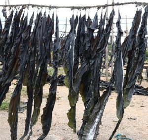 鲜活的昆布为深褐色,干燥后变黑,革质。昆布质地粗而生长慢,尚未进行养殖。昆布食用可烹调成:“昆布煮黄豆”、“昆布海藻汤”、“昆布鹅肠菜汤”等,十分可口。自古以来,昆布也是一味中药,散见于诸多古代医书中,如《本草经疏》载:“昆布,咸能软坚,其性润下,寒能去热散结,故主治十二种水肿,痿瘤结气(即甲状腺肿大)、痿疮(为颈部生疮,久而不愈,常出脓水)。”