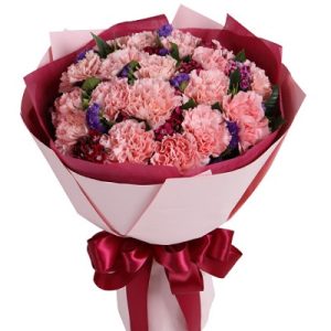 - M款:11朵白玫瑰加11朵粉色康乃馨加11朵绿色康乃馨花束