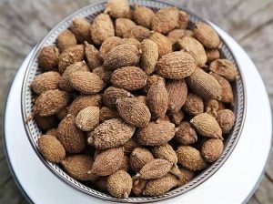 2、春砂壳为植物阳春砂的干燥果壳,半椭圆形或半卵圆形,囊间裂开呈对合状,外表棕褐色,密具短刺状的突起,基部有果柄残痕或连有总果柄。内表面淡棕色,可见显明的维管束。质轻,有香气。