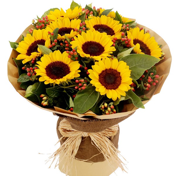 鲜花材质:11枝向日葵,黄莺满天星等配花点缀