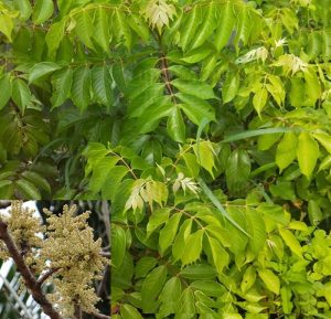 厚皮树,又名:喃木。落叶乔木,高4~10米,少为灌木状。树皮厚,有槽纹。小枝、嫩叶和花序密生锈色星状细柔毛。单数羽状复叶,聚生于小枝顶端,互生;小叶7~9,对生,长圆形或长卵形,长5~10厘米,宽2~3.5厘米,。先端长渐尖,基部稍偏斜,全缘,上面无毛,下面沿脉上被星状小柔毛。圆锥花序顶生;小苞片长1~2毫米;花小,单性同株或异株;雌花序较短;萼片4,卵形,长约1毫米,无毛;花瓣4,黄色或带紫色,矩圆状卵形;雄蕊8,在雌花中的较短且花药不发育;子房卵状,4室,常退化为1室,花柱3~4,柱头盾状。核果卵形,稍扁,长8~9毫米,成熟时红色。花期3~4月。