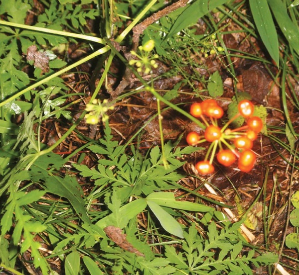 羽叶三七果、黄连三七、花叶三七、疙瘩七