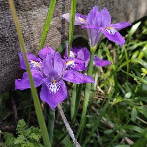 多年生草本,植株基部围有棕褐色毛发状的老叶残留纤维。根状茎短,节不明显;根膨大略成纺锤形,棕褐色,肉质。叶基生,灰绿色,条形或剑形,花期叶长10-20厘米,宽2-5毫米,果期叶长20-35厘米,宽1.2-1.4厘米,顶端渐尖,基部鞘状,互相套叠,有2-5条纵脉。花茎很短,不伸出地面,基部围有数枚膜质的鞘状叶;苞片绿色,宽披针形或狭卵形,长2-4厘米,顶端渐尖,中脉明显,内包含有1-2朵花;花深蓝色或蓝紫色,直径3-3.5厘米;花被管细长,上部逐渐扩大成喇叭形,长5-7厘米,直径1-1.5毫米,外花被裂片椭圆状倒卵形,长约4.5厘米,爪部细长,中脉上有桔黄色须毛状附属物,内花被裂片倒披针形,长3-3.5厘米,直立;雄蕊长约2.3厘米,花药黄色,花丝白色;花柱分枝花瓣状,长约2厘米,顶端裂片细长而尖锐。蒴果绿色,三棱状卵形,长1.5-2厘米,直径1.3-1.5厘米,顶端有短喙,成熟时自上而下开裂至1/3处,苞片宿存于果实基部;种子长圆形,黑褐色,无光泽,无附属物。花期5-6月,果期7-8月。