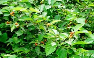 小灌木。茎高1~2米,小枝黄褐色,被星状毛。单叶互生,叶阔卵形至卵状椭圆形,长6~12厘米,宽4~8厘米,先端急尖,基部圆或微心形,边缘具不规则重锯齿,上面绿色,被白色星状毛,下面灰棕色,密被棕色星状毛,基出3脉,叶柄长约1厘米。聚伞花序腋生,小花2~4朵,花被外面灰棕色,内面橘黄色。核果球形,不明显4裂,被硬毛。