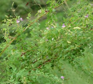 小叶三点金草,草本,平卧或直立。根粗,木质。茎分枝,纤细,无毛。托叶披针形;三出复叶,顶生小叶长圆形,长2-9mm,宽约4mm,先端圆钝,微凹,有短尖,基部圆形,上面无毛,下面具白色长柔毛,侧生小叶稍小。总状花序顶生或腋生,总花梗有开展短毛;花萼浅钟状,萼齿披针形,较萼筒长,有白色柔毛;花冠淡紫色,旗瓣近圆形,基部狭,无爪,龙骨瓣与翼瓣等长;雄蕊10,二体。荚果有荚节2-4,有毛荚节长约4mm,宽约3mm。花、果期5-9月。