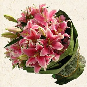 这次他聪明了,没有买玫瑰,买了一束百合花。