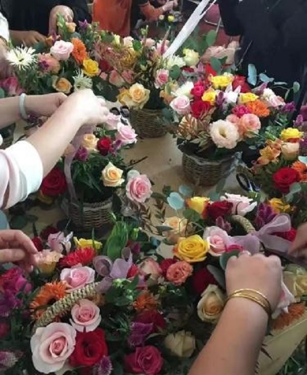 在制作过程中,大家挑选了自己喜爱的花材:雍容华贵的牡丹、清雅的百合、热烈的玫瑰,各具特色。通过巧妙的排列,有的营造出繁花似锦的效果,有的则让每一朵花都显得格外醒目。经过数小时的精心制作,各式各样的簪花在会员们的巧手下诞生,每一件作品都凝聚着对母亲的深情厚意和对传统文化的尊重。