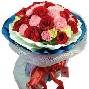 玫瑰加康乃馨或康乃馨加玫瑰花语,康乃馨配玫瑰花语代表着:爱与关怀缺一不可。所以,不管在节日还是生日都可以送给自己心爱的人还有自己尊敬的母亲。