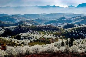 23、站在观花台上,低头看这满园的梨花,盛大无比,这个世界全是花的海洋,自己也仿佛被淹没在这白色的海洋里了。这时,惟有惊喜和震撼,没有语言。