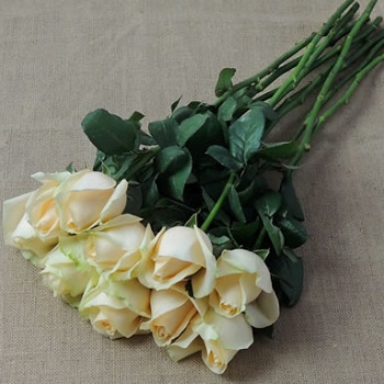 最常用香槟玫瑰有蜜桃雪山:香槟色,是以往老香槟(维西莉亚)替代品种,解决了以往老品种香槟玫瑰颜色不稳定,花头偏小的问题。