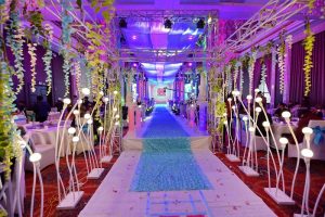 因为装饰树和盆栽植物可以使婚礼现场更加富有张力,所以可以在过大的场地,以及裸露的区域使用各种盆栽绿色植物来使空间看上去更丰满。