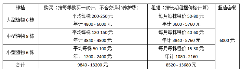 绿植租赁套餐与购买、一般租摆费用比较