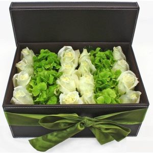 - P款:绿掌3枝、白百合3枝、白玫瑰8枝、白绣球1枝