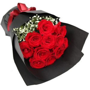 特点:昆明33枝顶级红玫瑰,搭配黄莺和石竹梅。