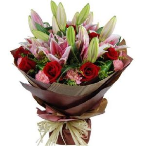 其实可以选择百合,一束百合不仅能表达你的爱意还有百年好合的美好愿望。如果是还没结婚,玫瑰当然是首选了,至于究竟送几朵可以根据你的预算和玫瑰花语决定,我不建议是红玫瑰,因为实在太俗了,香槟色的也很漂亮,你可以选择用满天星或者情人草打底,都能有不错的效果,这样的花束款式有很多种,在春暖花开就能订购到。