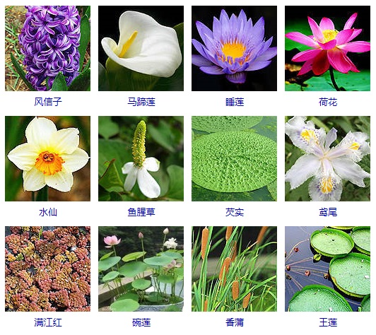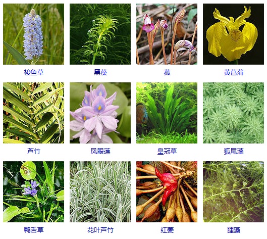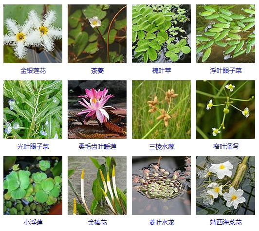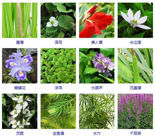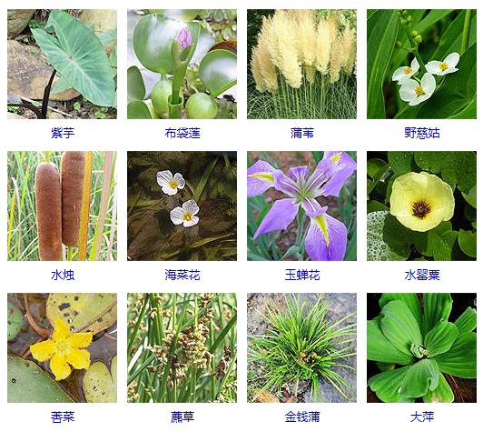 根据水生植物的生活方式,一般将其分为以下几大类:挺水植物、浮叶植物、沉水植物、水缘植物和漂浮植物以及湿生植物