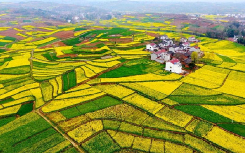 油菜花是最容易栽培的农作物之一,农民常于农田冬春休耕期间在田里洒上油菜籽,播种后约两个月便开出朵朵黄色的小花,等到第二年春天农民再将油菜耕入土中以增加土壤的养分。而开花后结的果实,是我国第一大食用植物油原料。