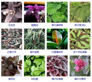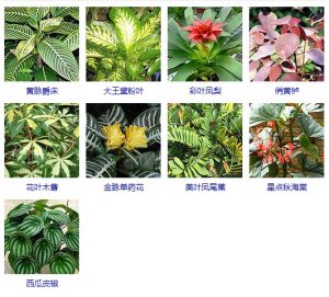 较喜阳类观叶植物:如变叶木、花叶榕、朱蕉、荷兰铁、美洲铁、苏铁、花叶鹅掌柴、金叶垂榕、金边狭叶凤梨类等。