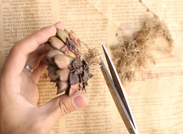 根系修剪后,如果叶片底部有枯叶也是需要清理掉的,这些枯叶中经常会藏有虫子的卵,枯叶过多也容易诱发病害,如果家里肉肉不多,我还是非常推荐清理完毕后用清水清洗一下,或者使用高锰酸钾类杀菌药水泡一下,这样做并不能100%防止肉肉受感染或者虫害,但能最大程度减少患病虫害的几率,不过我家里实在是太多啦~基本上修剪后清理完枯叶就结束了,这也是为什么我家里一年四季都有介壳虫的主要原因,都清理完毕后,不论是否用水清洗,都要进行晾根,将肉肉翻过来,根部朝上,放置在没有阳光直射的散光区域,2-3天,根据天气及室内环境情况有可能会延长2天,反正多晾两天也没事啦~总之要彻底晾干,让被剪掉位置的伤口愈合,然后再翻过来,平放在干燥的土壤上就可以了(土壤底部有一点潮气是最好的),再过一周左右就会生长出根系了,我知道这个环节大家的通病就是-没事翻过来看看长根没。。。不要手贱啊!