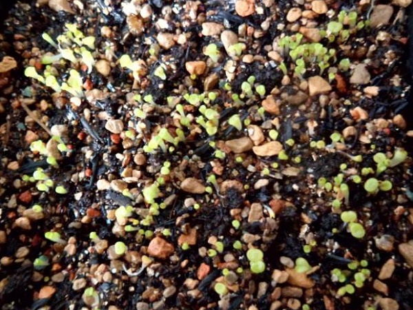 从种子撒下就可以放在散光明亮处了,光线有助于发芽(没依据,我固执的认为),这里要明白几点,说不能直射的,不是因为光线直射,是担心封闭环境,外面光线直射,里面升温太高,种子熟了- -,而不是说种子不能光线直射,如果那样,野外的怎么发芽?种子的发芽温度,我觉得 景天科 番杏科 15-30度都可以,仙人球要求高一些,30-40度就可以,没有那么严格,不至于差一两度就不能播种,千万不要那么矫情呀。有光线发芽的种子出来就很硬实,阴处发芽的,出来都是豆芽,很容易死。”隔着玻璃”,很多都会看到这个词,这个作用我觉得,恩,是我”觉得”(容我懒没细究过)能滤去紫外线,为什么光线不能含紫外线?那好吧,我举个例子,经常不出门的人或者小孩子,皮肤太嫩了,阳光紫外线强,会造成严重晒伤,小孩会晒坏,小苗呢?直接晒死。