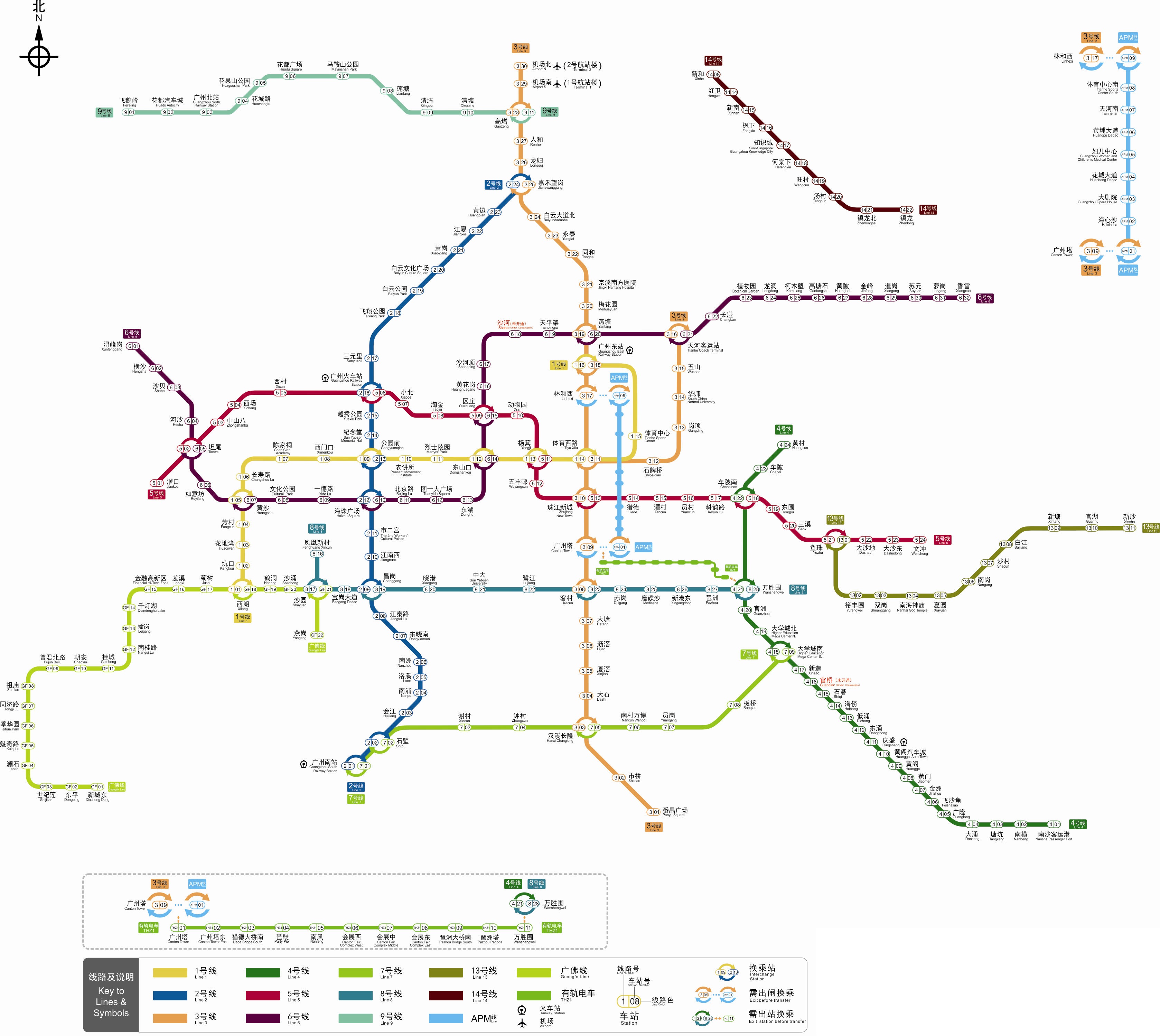据2018年9月广州地铁官网信息显示,其在建线路共有15条(段),分别为3号线东延段、5号线东延段、7号线二期、7号线西延段、8号线北延段、11号线、13号线、13号线二期、14号线、14号线二期、14号线一期、18号线、21号线、22号线、广佛线燕岗至沥滘段,在建里程402.913千米。