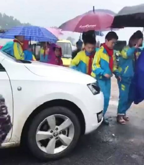 9月18日消息,9月18日下午,山东菏泽一学校门口,天正下着雨,一辆鲁R15V76白色小轿车在此路过,驾驶人不但没有礼让过往学生,反而硬是用车头抵着孩子们的腿,生生蹭出了一条路。经调查,驾车的为张姓女司机,事发时间为当天下午两点多,学生上学时。这辆白色小轿车在此路过,女司机硬是用车头顶着孩子们的腿,生生蹭出了一条路!