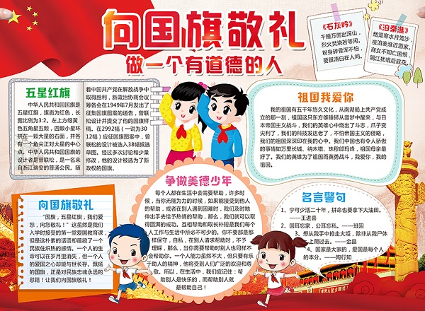 向国旗敬礼手抄报简单又漂亮内容2:向国旗敬礼 做一个有道德的人