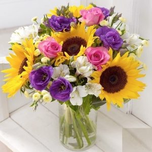 - H款:玫瑰花+康乃馨+太阳花+百合花手提花篮