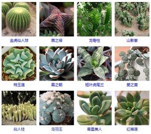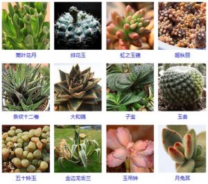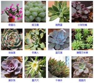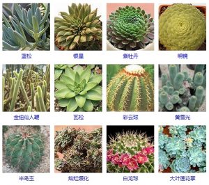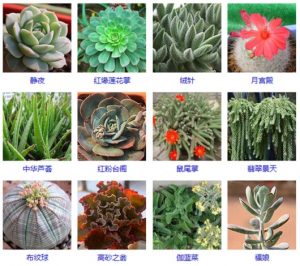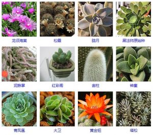 - 虎刺梅,雷神,金手指,仙人掌,昙花,仙人球,生石花,宝石花,蟹爪兰,虹之玉,碰碰香,燕子掌