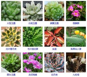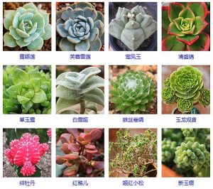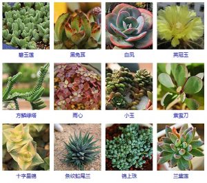 - 星王子,小和锦,星乙女,千兔耳,小红衣,白牡丹,熊童子白锦,爱染锦,帝冠,雪莲,快刀乱麻,樱水晶