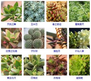 12、星王子,小和锦,星乙女,千兔耳,小红衣,白牡丹,熊童子白锦,爱染锦,帝冠,雪莲,快刀乱麻,樱水晶