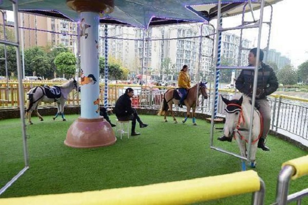 这个在四川成都的“旋转真马”游戏吸引了人们的注意。四匹生机勃勃的马被拴在圆形场地的钢管上,而不是由电动机驱动的木马。当机器启动时,马被向前拉并盘旋,来访者坐在他们的背上。网民愤怒地谴责这种做法的残酷和不人道。接线员答复说,康乐项目是合格的,合法经营,马必须每天锻炼,否则肠道问题会发生。为了安全起见,这匹马被拴起来了。它不能跑来跑去,也不能咬人。