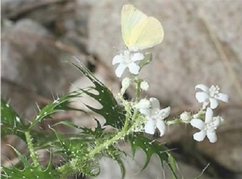 坏女人花,学名“Cnidoscolus angustidens”,它还有另外一个名称:Mala mujer,翻译成中文就是“坏女人”。主要分布在美国西南部以及墨西哥。它的表面铺满尖刺,并且这些尖刺非常坚硬,甚至有需要的话,可以把这种植物的尖刺当成鱼钩来使用。这种植物的真正可怕之处是向外渗出的一种具有腐蚀性的乳状液体,这是大戟属植物家族很多成员的一个共同特征。