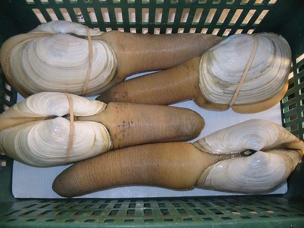 PS:象拔蚌(学名:Panopea abrupta):生物名称是太平洋潜泥蛤,又名皇帝蚌、女神蛤,海产商品名称“象拔蚌”。两扇壳一样大,薄且脆,前端有锯齿、副壳、水管(也称为触须)。象拔蚌是商业名称,其种名太平洋潜泥蛤(Panopea abrupta),是已知最大的钻穴双壳类,壳长约18-23厘米,水管可伸展1.3米,不能缩入壳内;体重连壳可达3.6千克。象拔蚌因其又大又多肉虹管被人们形象地称为“象拔蚌”。是蛤属的大型贝类。象拔蚌又称海笋,属于软体动物门,是一种海产贝类,个体有大有小,栖息地因种类而异。通常其两扇壳一样大,薄且脆,前端有锯齿、副壳、水管(也称为触须),这水管很像一条肥大粗壮的肉管子,当它寻觅食物时便伸展出来,形状宛如象鼻一般,故得象拔蚌之美名。
